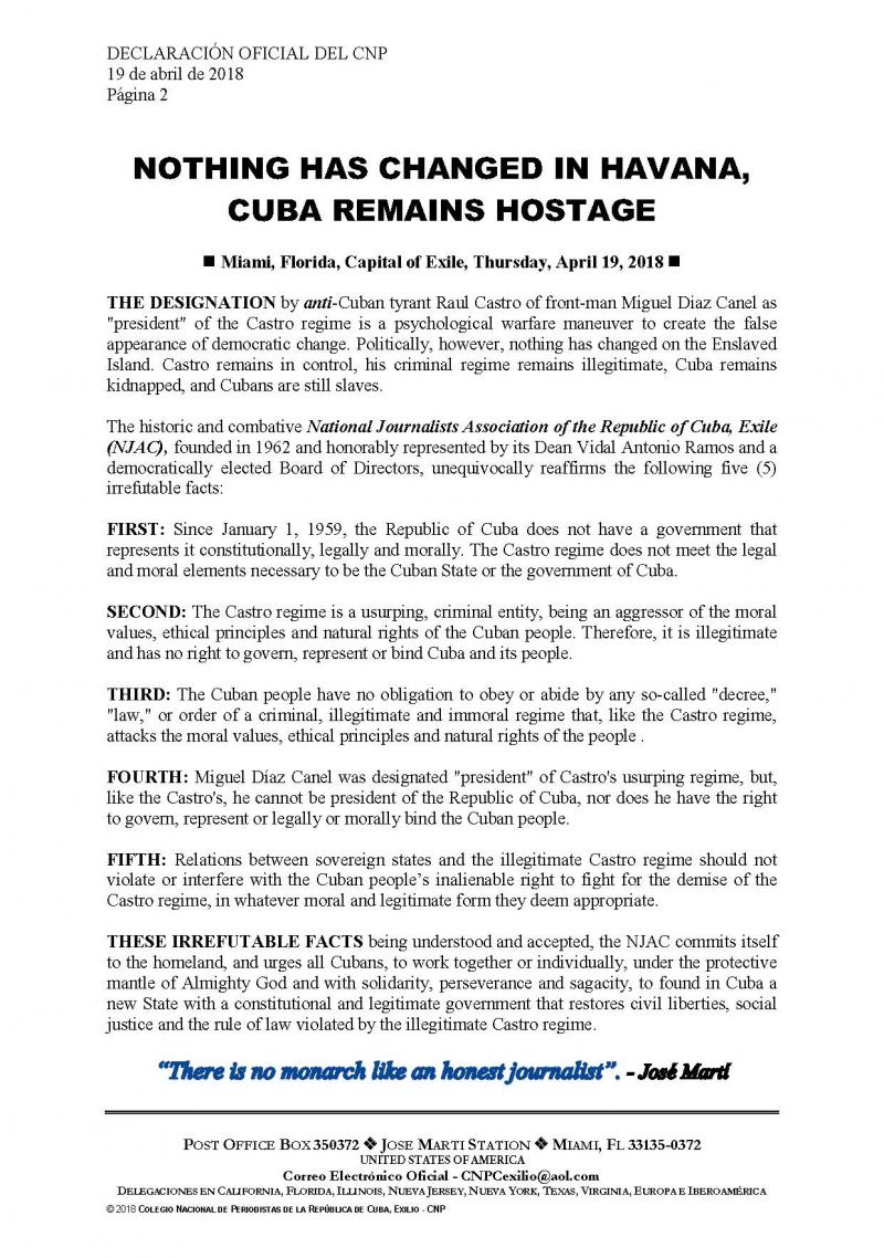 Copyright © 2018 The National Journalists Association of Cuba in Exile, Inc. All rights reserved.