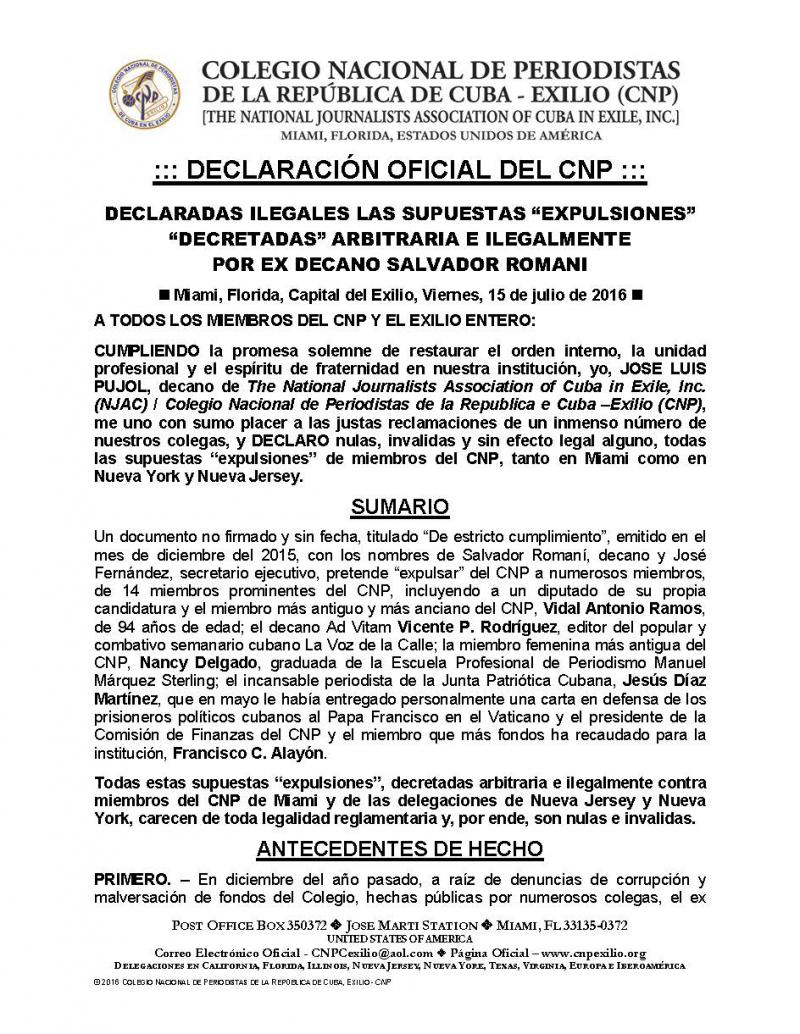 POB 350372 | Jose Marti Station | Miami, FL 33135-0372 | 786-286-8787 | cnpcexilio@aol.com