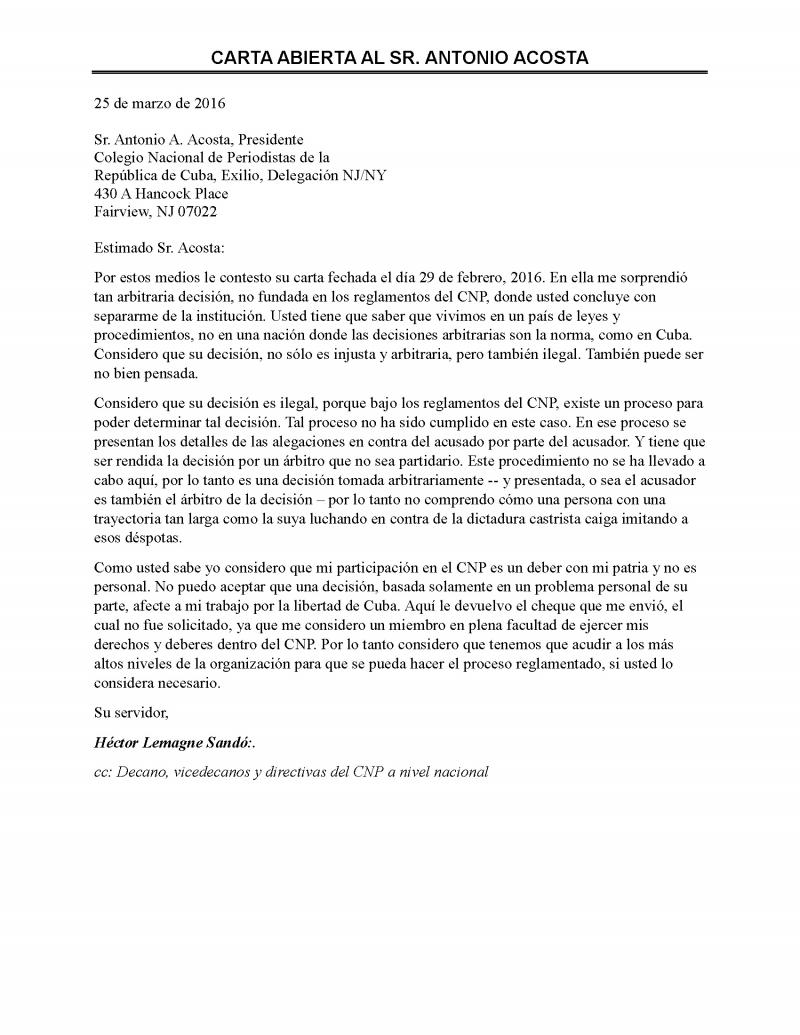 CARTA ABIERTA al Sr. ANTONIO ACOSTA