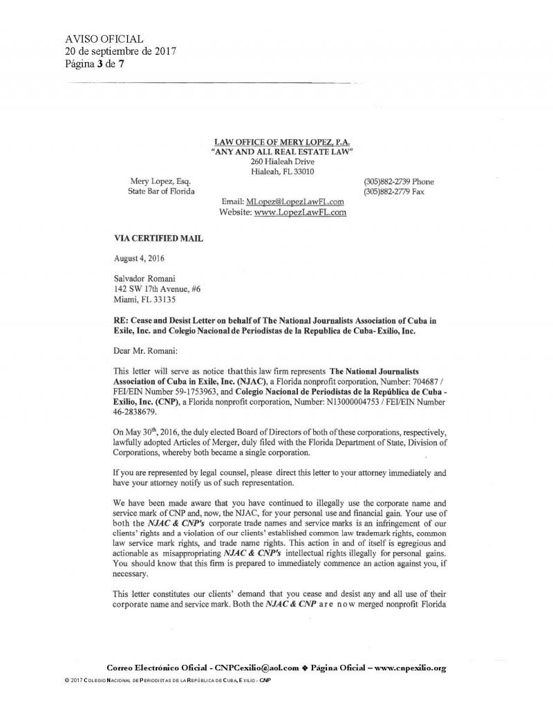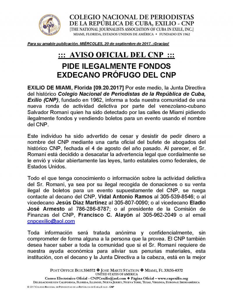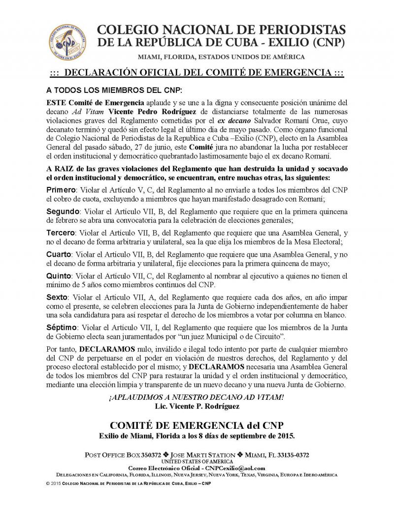 POB 350372 | Jose Marti Station | Miami, FL 33135-0372 | 786-286-8787 | cnpcexilio@aol.com