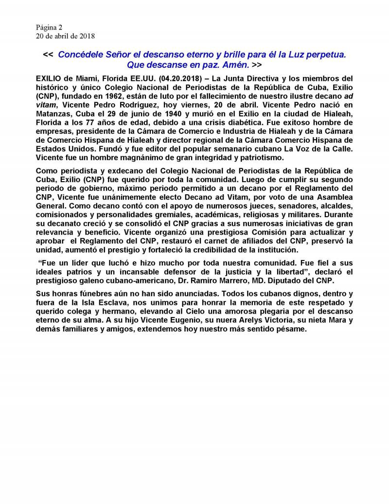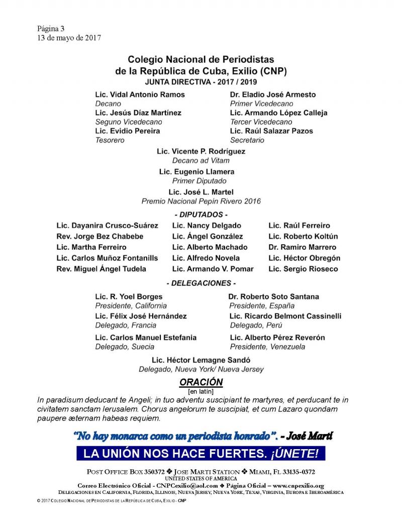 POB 350372 | Jose Marti Station | Miami, FL 33135-0372 | 786-286-8787 | cnpcexilio@aol.com